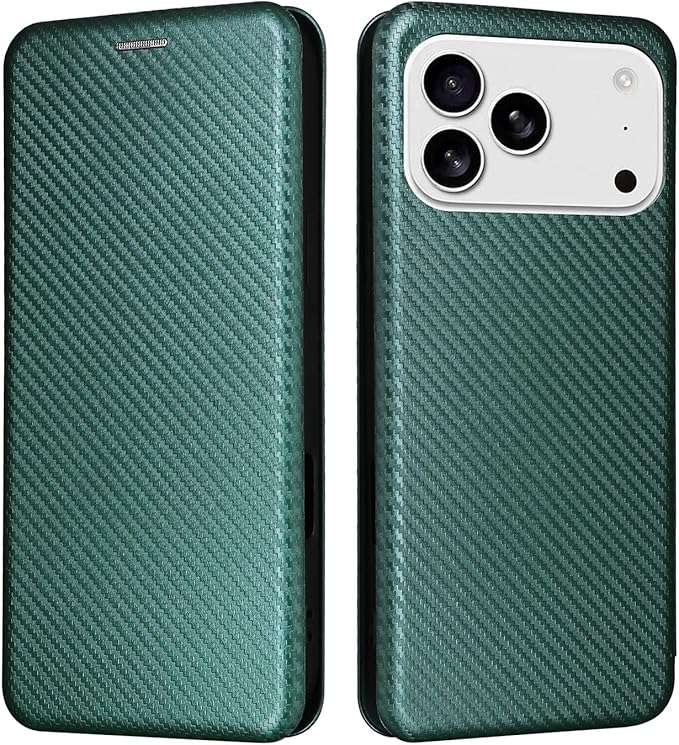 Pelanty for iPhone 17 Pro Max ケース手帳型 炭素繊維調 for iPhone17 Pro Max 携帯カバー 軽量薄型 財布型 カード収納 アップル アイフォン17プロ Max スマホケース マグネット ストラップ付き 耐衝撃 全面保護-グリーン
