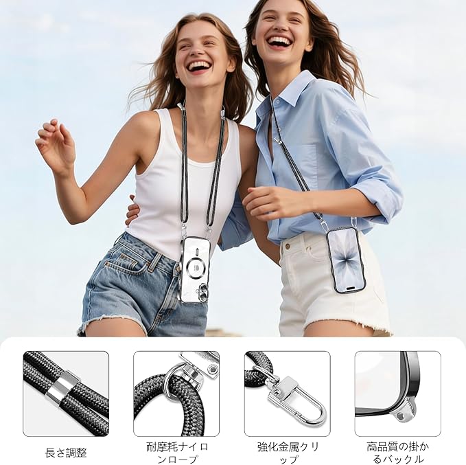 iphone 17 pro max ケース ショルダーストラップ付きのケースは両手を解放し、行きたい場所に行くのを助けてくれます。登山測量ロープに触発され、取り外し可能なショルダーストラップのデザインは普通の携帯ケースや斜めショルダーバッグの形に自由に変換できる。作業、旅行、出張、ショピング、散歩、コンサート、パーティーに最適です。手を離しても、携帯電話を携帯できます。スマートフォンに安心感を与えます。調節可能なコードストラップは非常に快適で、さまざまな色があるので、組み合わせて自分のスタイルを作成できます。