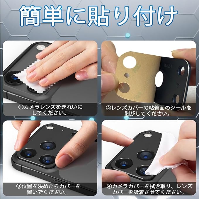 【嵌め込み式・簡単に貼り付け】レンズに合わせて嵌め込むように貼り付けて、密着ようにレンズカバーを押さてだけで完了します。初心者でも簡単にレンズカバーを貼り付けます。粘着力の強い3Mテープを採用しており、脱落しにくいで長時間の使用に耐えます。