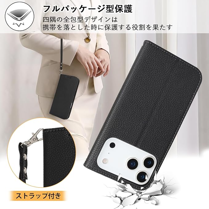 【Hamany】 対応 iphone 17 pro max ケース 手帳型 iphone 17 pro max case アイホン17プロマックスケース 財布型 カード収納 横置きスタンド機能 マグネット内蔵 ストラップ穴付き いphone 17promax スマホケース 2025年発売 耐衝撃 耐久性 耐摩擦 携帯カバー -ブラック