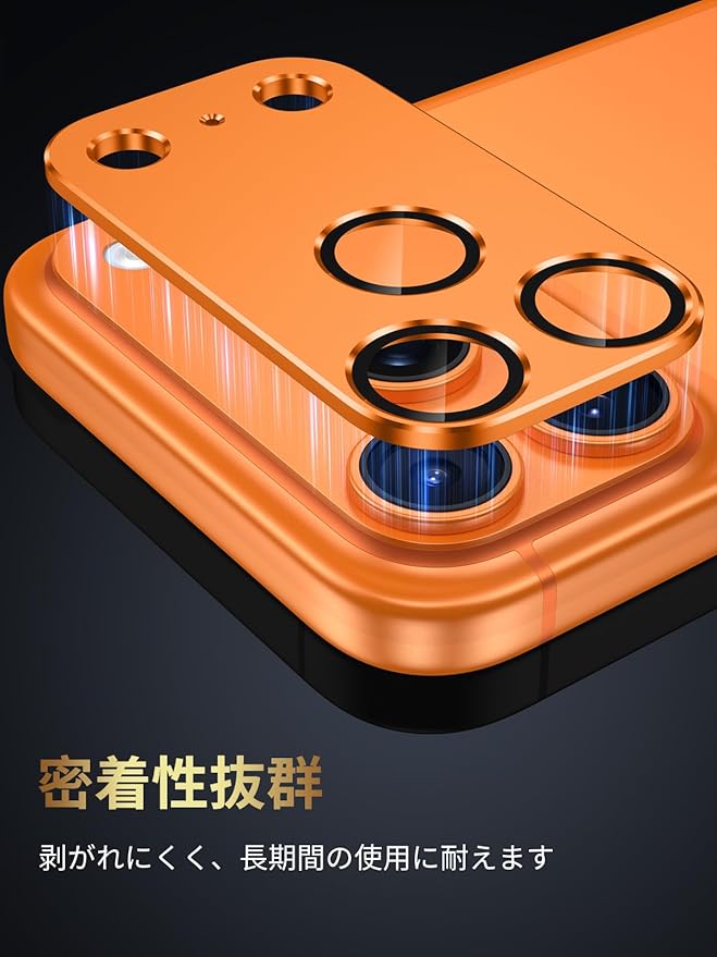 カメラフィルム iPhone 17 Pro Max用 カメラ保護 一体型 全面保護 黒縁取り アルミ合金 アイフォン17プロマックス レンズカバー 耐衝撃 9H強化ガラス いphone17 Pro Max専用カメラカバー 超高透過率 オレンジ