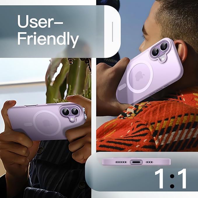 JETech iPhone 17 6.3インチ用 マグネットケース MagSafeに対応 半透明のマット背面 薄型 ミニマリスト 耐衝撃 フォンカバー (ラベンダー)