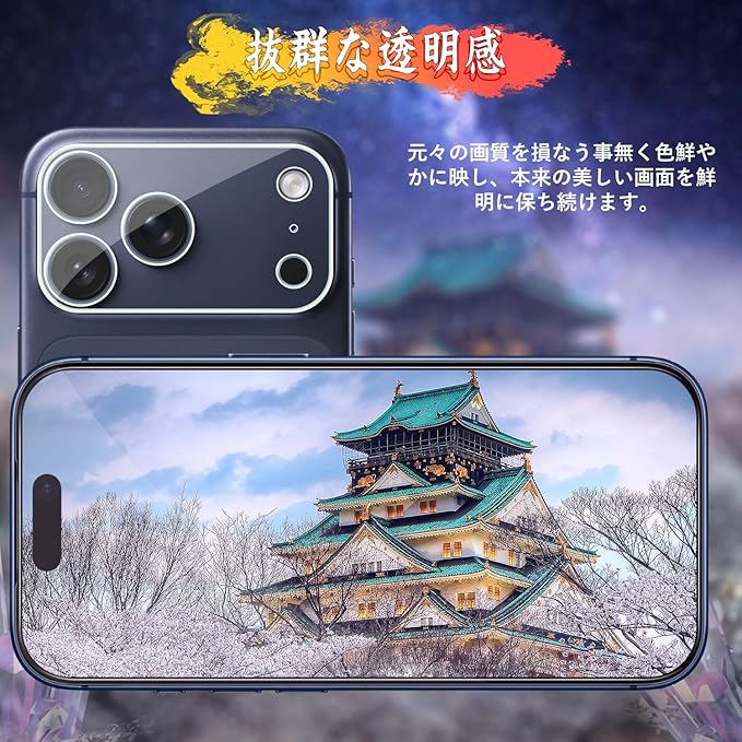 対応 iPhone 17 Pro Max ガラスフィルム(1枚)+ iPhone 17 Pro Max カメラフィルム(1枚)【ブルーライトカット】 目の疲れ軽減 硬度9H 全面保護 自動吸着 気泡防止 指紋防止 アイフォン17 Pro Max 保護フィルム