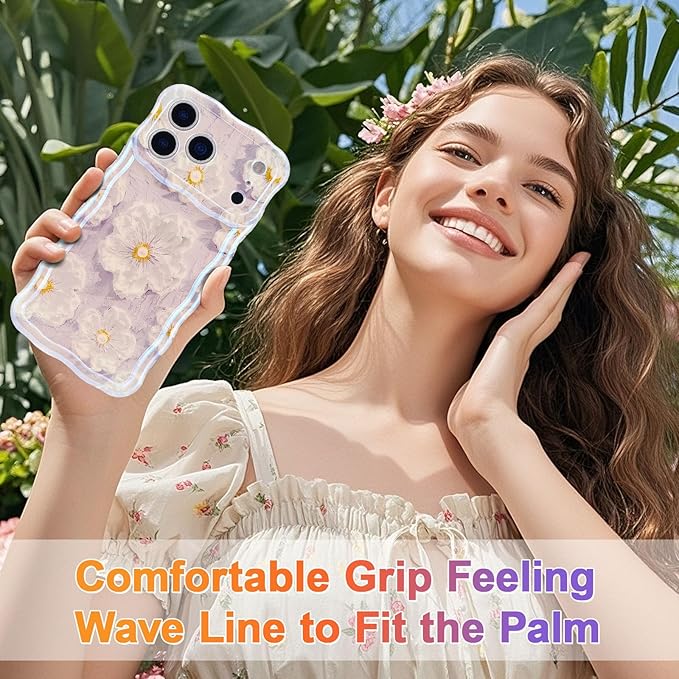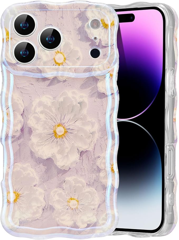 EYZUTAK ケース 対応 iPhone 17 Pro Max 用の 保護ケース柔軟なTPUカバー おしゃれ 可愛い 油絵の 花柄 薄型 軽量 カールボーダー携帯ケース 耐衝撃 スマホケース - ライトパープル