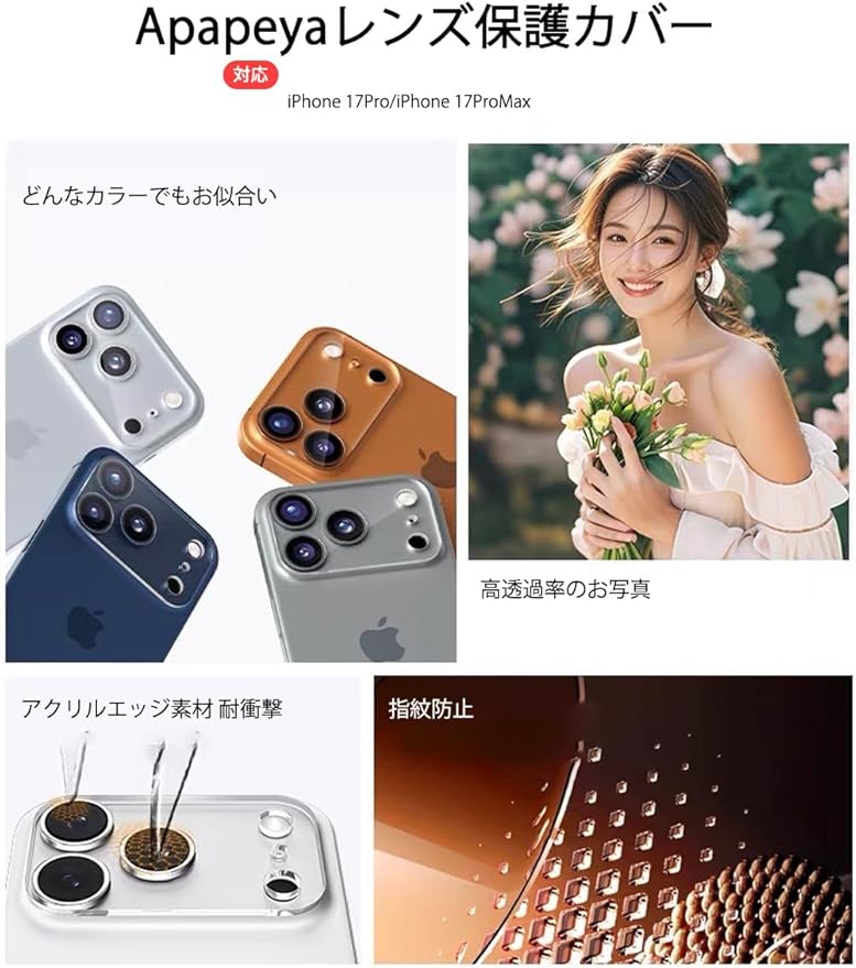 【対応機種】:Apapeyaカメラ保護フィルム 2025秋発売 iPhone17 Pro/17Pro Max 対応レンズ保護カバー クリアタイプ。