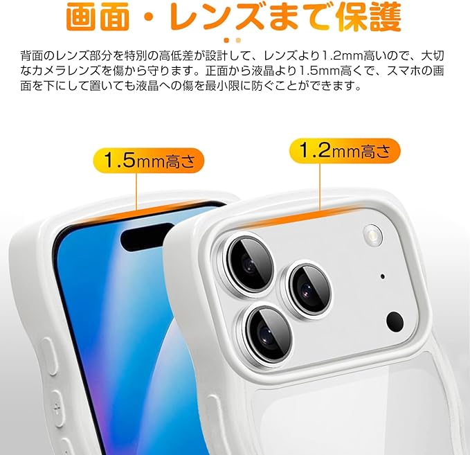 【全面保護・滑り止め機能】カメラレンズの周りに段差をつけて擦り傷を防ぎます。携帯電話ケースの側面は波型のデザインを採用しており、グリップが良く、携帯電話が誤って落下するのを効果的に防ぎます。
