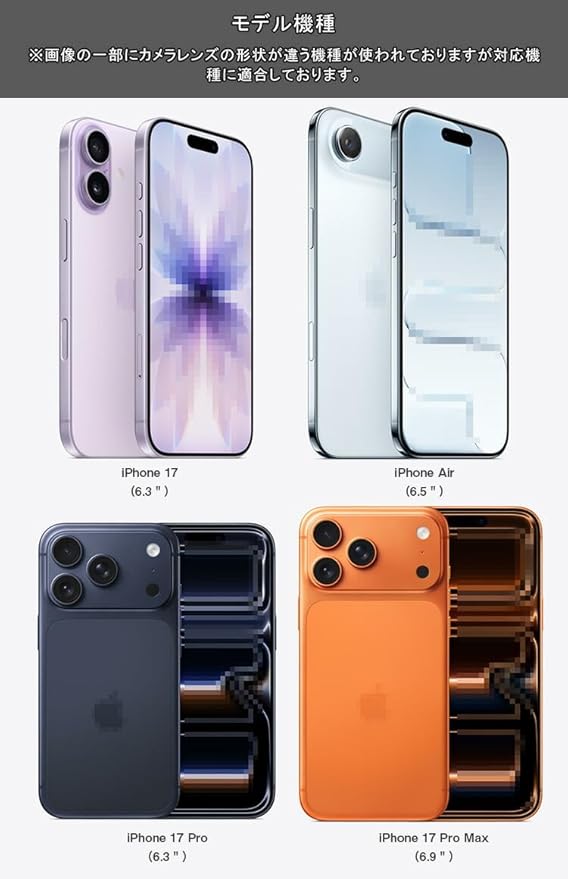 ますが対応機種に適合しております。 機種全体を保護してくれる iPhone17 Pro Max / 17 Air / 17 Pro / 17 Pro Max 用ケースです。 液晶面はPET素材の保護
