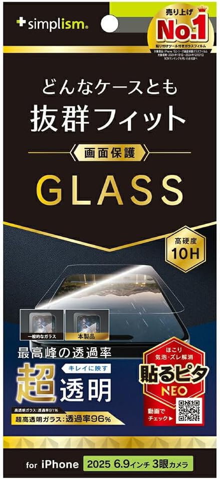 Simplism シンプリズム iPhone 17 Pro Max ケース干渉しない 超透明 画面保護強化ガラス TR-IP25L3-GLS-ARCC