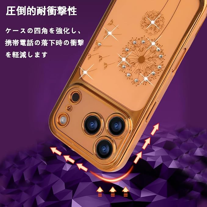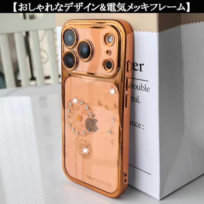 【背面花柄&ダイヤモンド】たんぽぽとダイヤモンド好きにはたまらないお洒落でオリジナリティー溢れるアイホンです。