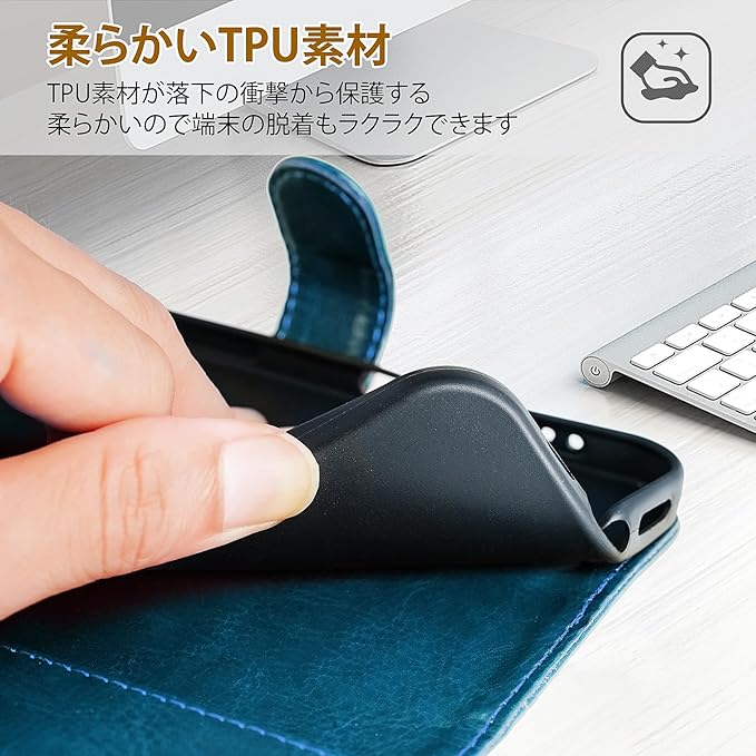 全面保護と素材:外装カバーには高品質な皮革(PUレザー)を採用しており、放熱性・耐衝撃性に優れ、肌触りも良好で、ホコリの侵入を防止します。内側のケースはTPU素材の柔軟性のあるソフトケースで、本体を360 の衝撃から確実に保護します。