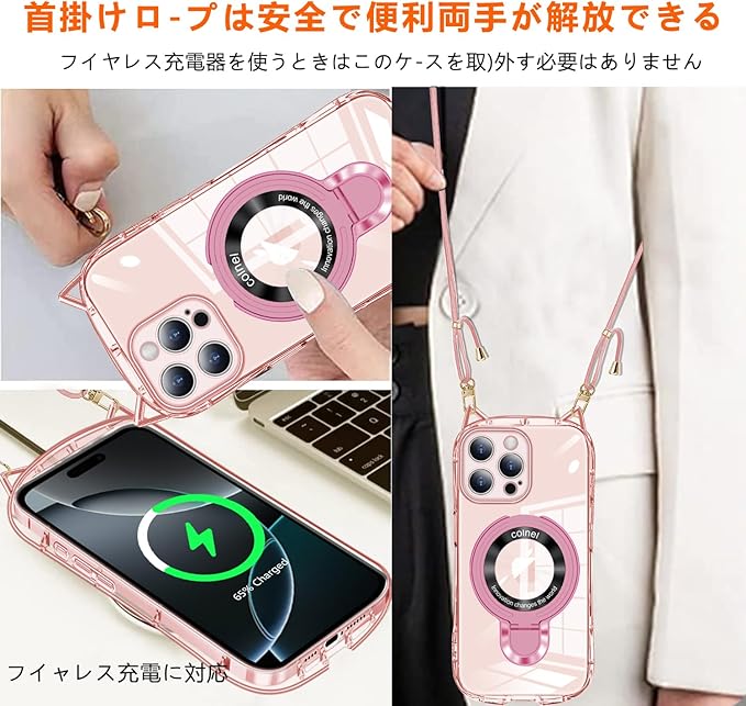 【多目的キャリー & ファッションデザイン】調節可能なストラップにより、サイド、またはフロントに持ち運べるときに完璧にあなたの隣に掛けることができます。 このアクセサリーはファッションだけでなく、通常のストラップよりも快適で実用的です。 作業、旅行、出張、ショピング、散歩、コンサート、パーティーに最適です。手を離しても、携帯電話を携帯できます。 【スタンド機能】多機能スタンドとリング一体型の斬新なデザインです。隠しスタンドの設計で、省スペース性に優れ、収納するときは水平的に置けできて、持ち運びの邪魔になりません。縦置きでも横置きでも安定して支えられ、40 ~120 の間で多角度自由に調整できます。FaceTimeでも動画でも両手が完全に解放されます。また、安定したアルミ合金製の円形スタンドを採用しており、携帯性からもファッション性からも唯一無二の存在です。【簡単着脱・美しさを保つ】猫耳部分にストラップ穴が設けられているのでストラップを簡単に取り付けたり取り外したりでき個人の好みに合わせて装着することができます。猫耳のデザインはストラップを取り外しても可愛らしさが損なわれず一体感のあるデザインで美しさを保ち続けます。【 360 全面保护】、各穴に誤差がなく、すべての機能はケースをつけたままスムーズに操作できます。ケースは、型どりを緻密に実施しておりレーム部分とカメラのフチをちょうどいい設計し。平らな場所においても、画面とカメラレンズに直接触れることがなくまたケースの四隅に落下時の衝撃を効率よく吸収するための技術落下時の衝撃を最小限に抑えます。 【フレキシブル&柔軟】 このTPU+PC ケースは、ネックバンドの電話ケースは高品質のンで作られ、透擦り傷防止 柔らかい手触り滑り止め 黄変防止衝突や引っかき傷から電話を保護できます 調節可能なショルダークロスボディネックレス このアクセサリーはファッションだけでなく、通常のストラップよりも快適で実用的です。