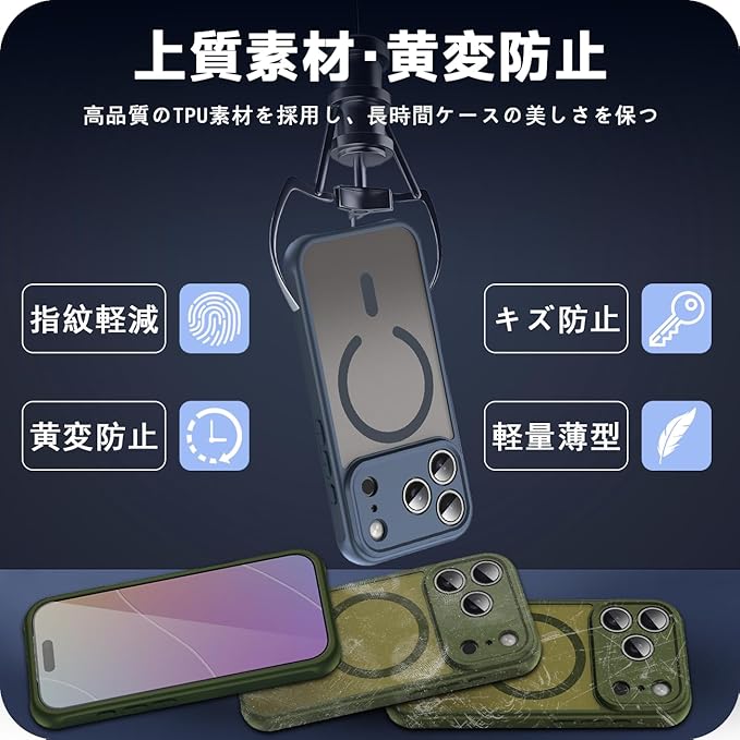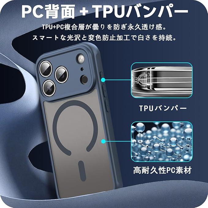 対応 iPhone 17 Pro Max ケース PC+TPU MagSafe対応 衝撃吸収 落下防止 米軍MIL規格取得 いPhone 17 Pro Max 半透明 カバー 黄ばみにくい スマホケース スマホカバー ワイヤレス充電磁気 薄型 (ダークブルー)SEIP17PMTPC-LAN