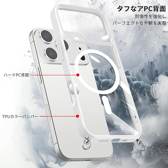 iPhone 17 Pro Max 用 ケース クリア ショルダー MagSafe対応 ワイヤレス充電 アクリル背面 耐衝撃 マグネット搭載 アイフォン17プロマックス ケース マグセーフ対応 耐久性 滑り止め 黄変防止(ホワイト)
