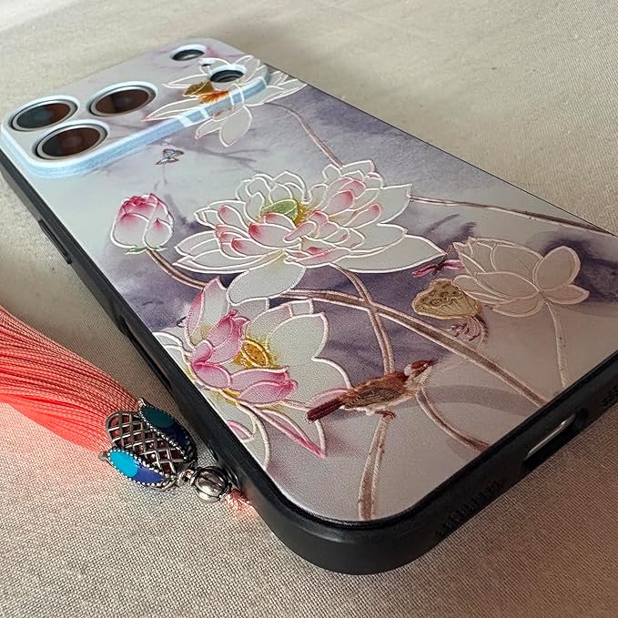 KOLO【蓮と蝶】iPhone対応 17 Pro Max スマホケース ハス はす 蓮華 ロータス カバー(白) iPhone17 Pro Max