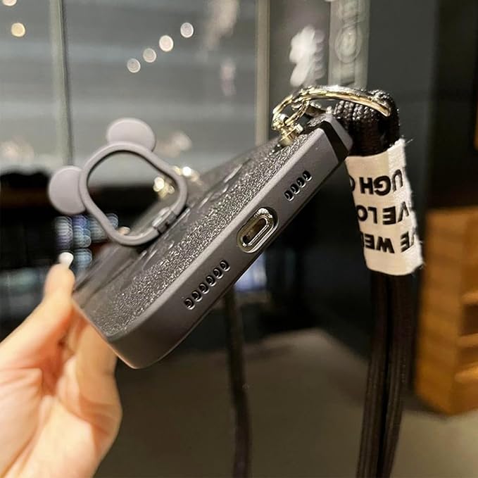 Arpe 可愛い ベアブリック カウズ スマホケース iPhone 17 Pro Max 用 ケース 首かけストラップキックスタンド 保護カバー スタンド機能 アイフォン 17 Pro Max ケース カラー(黒)