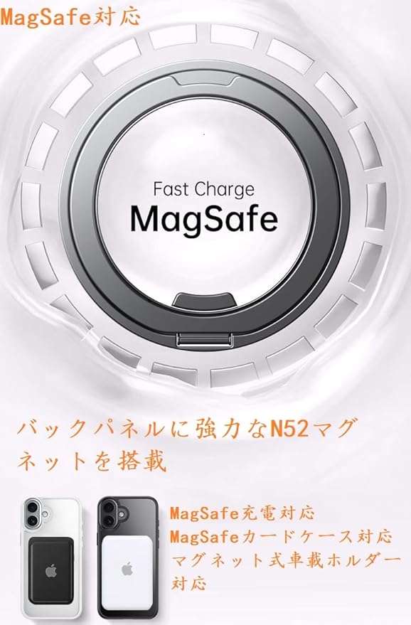 特徴 360 回転可能, Magsafeリングス, Magsafe対応, カメラプロテクター内蔵, 隠しスタンド機能 縦横両対応
