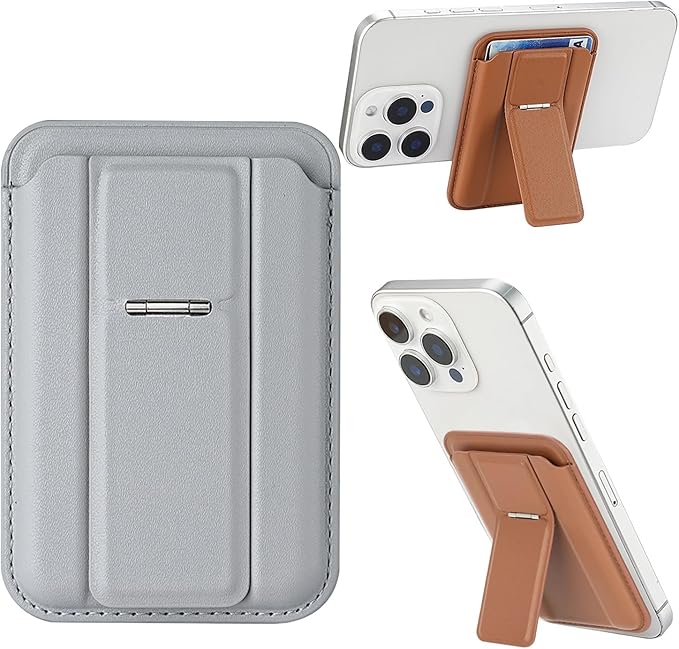 [スマート良品] Mag-Safe対応 カードケース スマホスタンド 強力マグネット 落ちない設計 薄型 軽量 カード収納 iPhone 17 16 15 14 13 12 Pro Max mini Android対応 メタルリング付き (グレー)