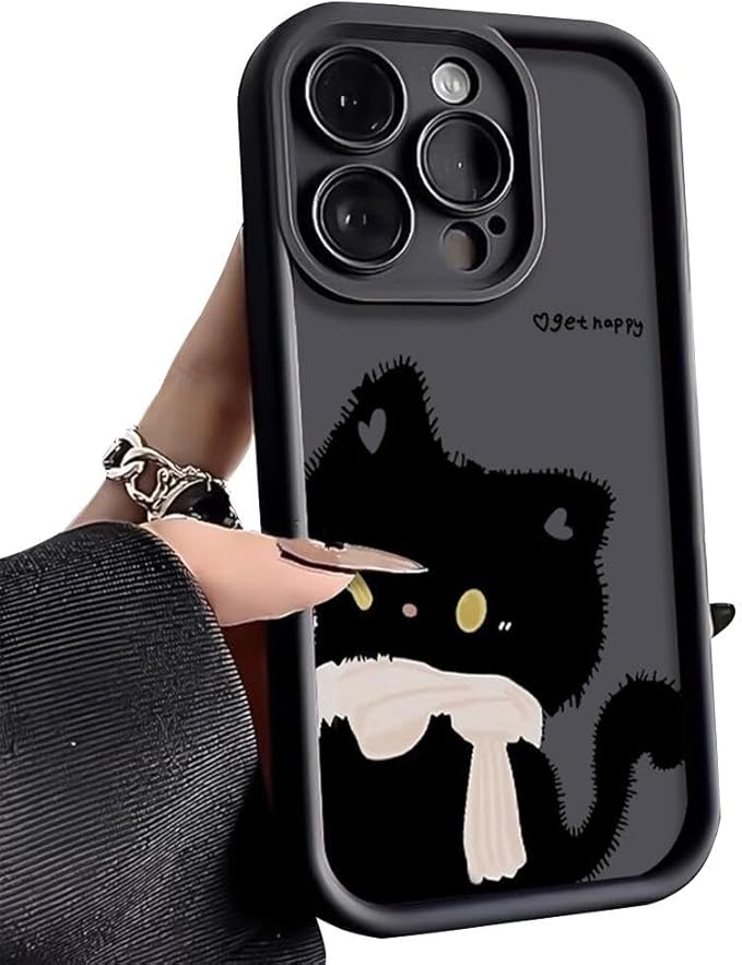 ケース For iPhone 17 Pro Max 可愛い 猫 韓国 ソフト アヒル 漫画 人気 動物柄 TPUカバー 衝撃吸収 落下防止 アイフォン 17 Pro Max 專用スマホ ケース カバー 薄型 特製スマホケース レンズ保護 スレ傷防止 女子力 ファッションクリエイティブかわいい かわいい携帯電話ケース(黒)