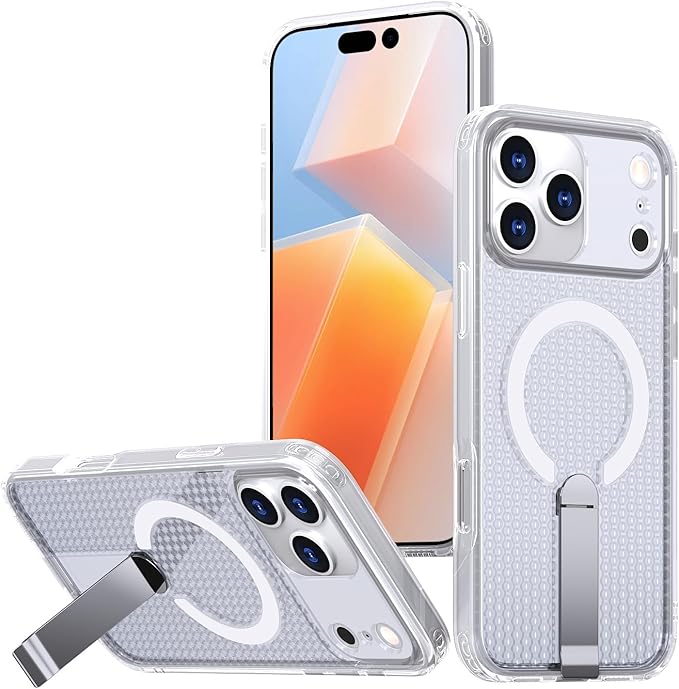 放熱 iPhone 17 Pro Max 対応 ケース Magsafe対応 縦置き スタンド付き アイフォン17promax 用 カバー メッシュ 放熱ケース 耐衝撃 薄型 軽量 ,白