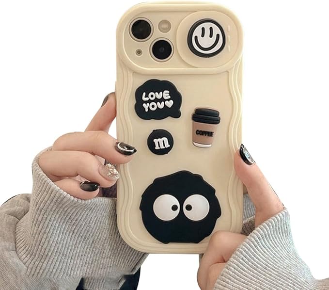 可愛い 3D まっくろくろすけ スマホケース iPhone 17 Pro Max 用 ケース コーヒー アイフォン 17 Pro Max 用 ケース シリカゲル保護カバー スマホ 傷つきにくさを向上 白