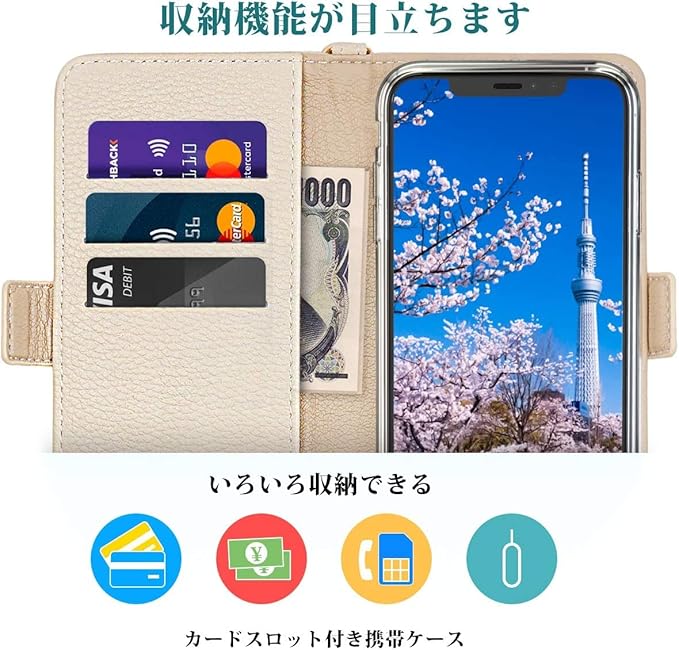 【上質な素材&落ち着いたデザイン】上質なPU合皮レザーを使用し、高級感と軽さにこだわったスマホケースです。しっかりとした作り、縫製・質感・手触りにも優れています。精密なデザインで、装着状態でも電源ボタン、音量ボタン、コネクター等が問題なく利用できます。ギフトとしてもおすすめいたします。