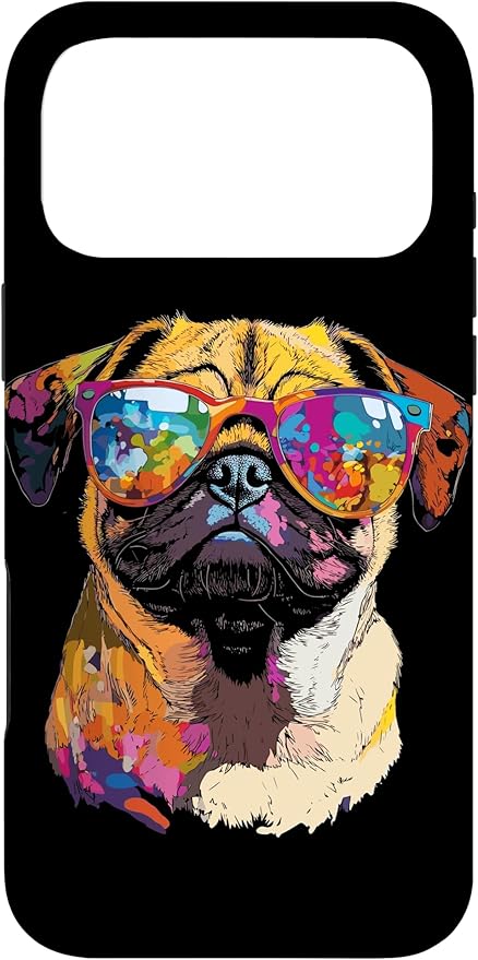 サングラスとパグベージュ犬愛カーリンかわいいパグ スマホケース iPhone 17 Pro Max 用