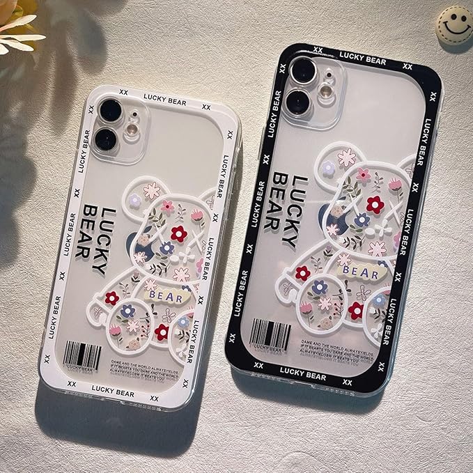Arpe カウズ ベアブリック 可愛 スマホケース iPhone 17 Pro Max 用 ケース 花を持つ アイフォン 17 Pro Max 用 ケース (6.9インチ) 傷つきにくさを向上 シリコーン カラー(白)