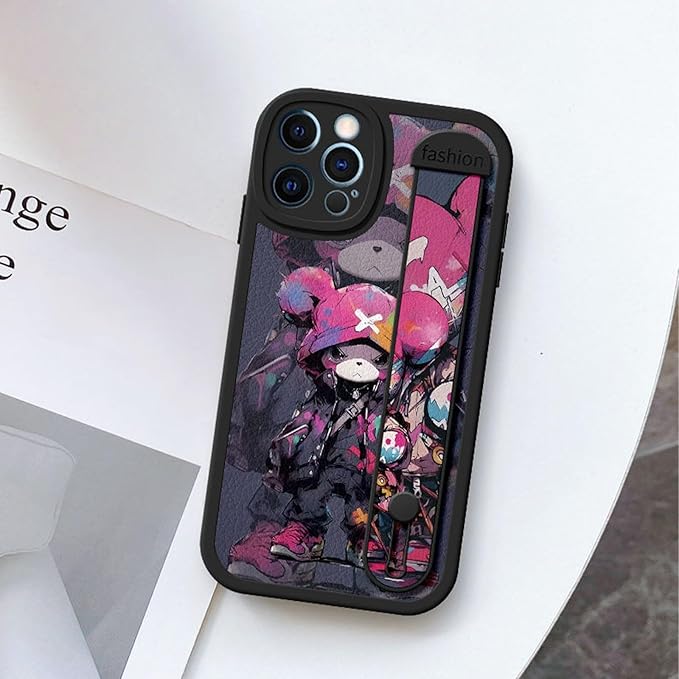 Arpe かわいい ベアブリック カウズ スマホケース iPhone 17 Pro Max 用 ケース アイフォン 17 Pro Max 用 ケース (6.9インチ) キックスタンド リストレット 傷つきにくさを向上 カラー(紫黒)