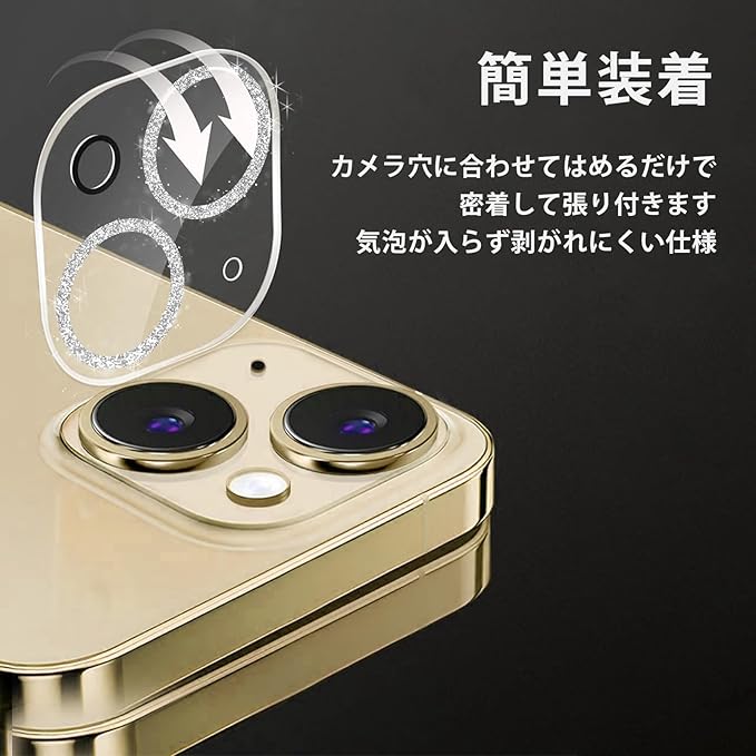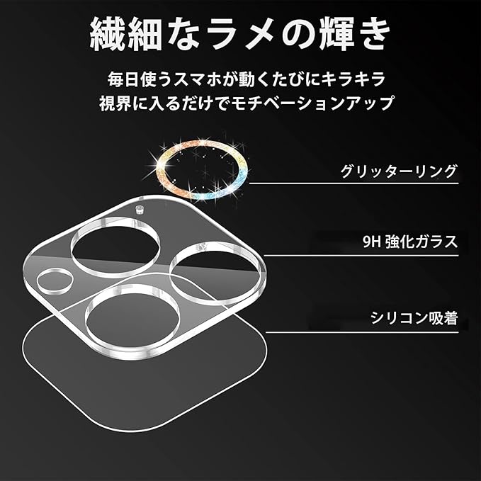 【 2枚セット 】 iPhone 用 カメラカバー カメラ保護 キラキラ 繊細な ラメ ケース アクセサリー 剥がれにくい 黒い 縁無し 強化ガラス レンズカバー レンズ フィルム かわいい 韓国 風 ファッション おしゃれ