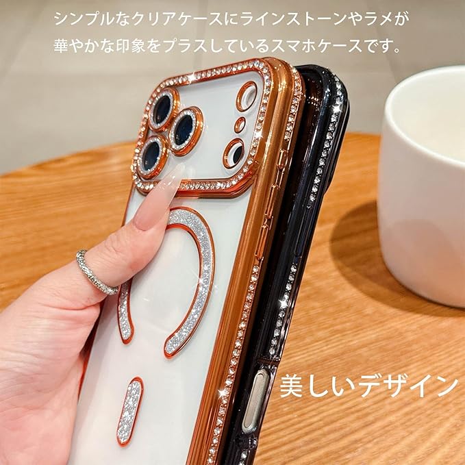 可愛い キラキラ ラインストーン スマホカバー、MagSafe対応機能を備えているスマホケース。カメラレンズ保護 耐衝撃 透明 耐黄変 スマホケース
