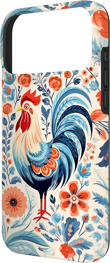 鶏 花柄 ヴィンテージ ニワトリ 農場の動物 スマホケース iPhone 17 Pro Max 用