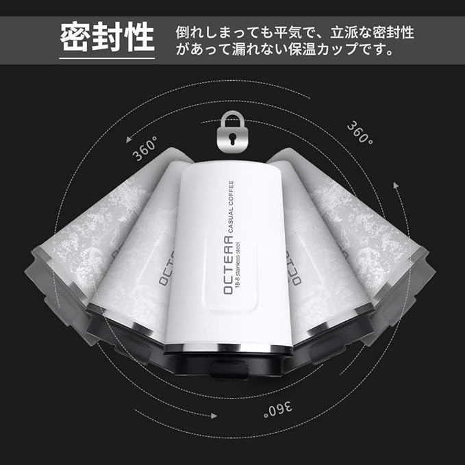 【製品構造】:本品は食品用S304ステンレスの材質を採用され、健康で衛生です。密封性が良いので、蓋をしっかり閉じるとカバンに入れて横にしても漏れないです。取っ手は付いてませんが、普通のコーヒーカップより手触りが繊細なので、滑り止めが一番です。