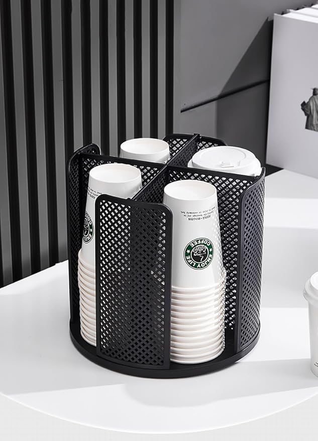 紙コップホルダー カップホルダー 360度回転 カップディスペンサー 紙コップ収納 カップスタンド 大容量 コーヒーカップ コンビニ、ビュッフェ、オフィスなど適用 (ブラック)