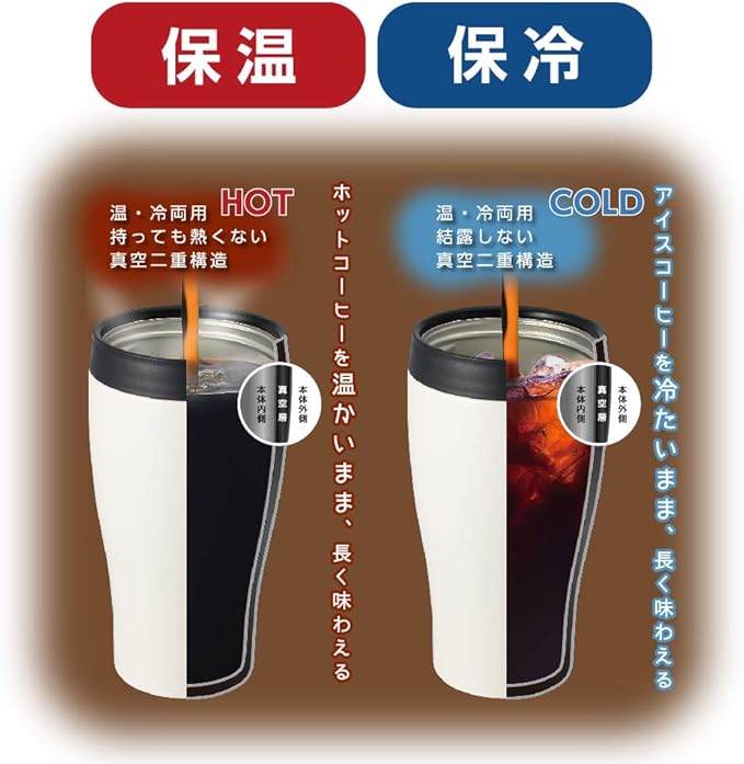 ●真空断熱二層構造なので、飲み物の飲みごろ温度を保ちます。●飲み口とフタが開けやすい。●デザインがかわいらしい。●驚きの保温保冷効力●コンビニでコーヒーを直接ドリップして、真空断熱で飲み頃温度を保とう。