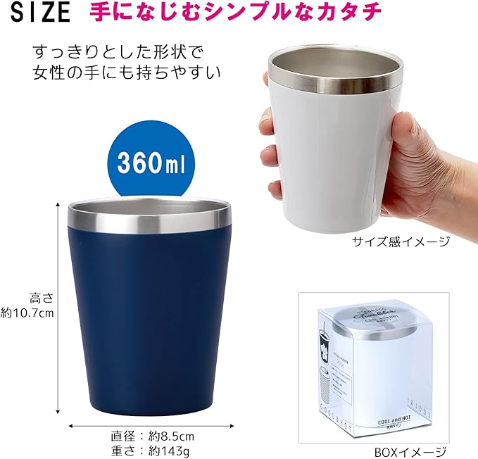 小倉陶器 真空断熱 ステンレスタンブラー 360ml 保温 保冷 二重構造 コンビニコーヒーカップ マグ (マットブルー) 約φ8.5 h10.7cm