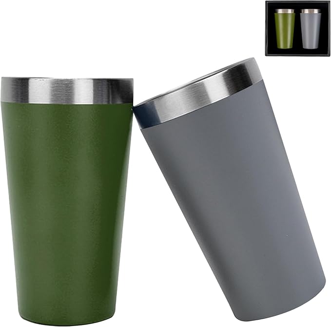 【商品詳細】 「本体サイズ(2個セット/タンブラー灰、緑各1個)」:約8.5cm 8.5cm 15.5cm、容量は450mlの大容量で、コンビニのコーヒーマシンに直接セットしてお使いいただけます。もちろん、おいしいビールからソフトドリンクまで、グラス感覚でお使いいただける万能タンブラーです。 「材質」:ステンレス鋼 「パッケージサイズ」:約25cm 21.5cm 9cm
