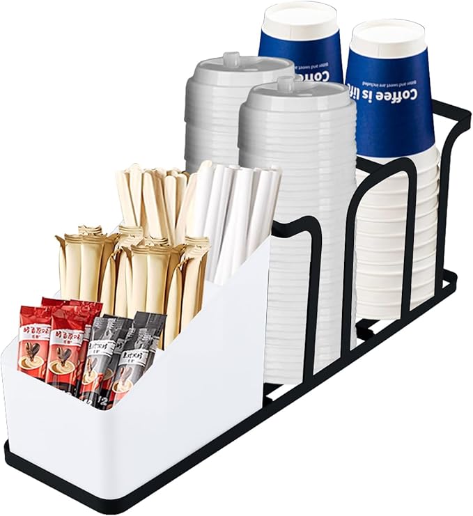 紙コップホルダー 紙コップ収納ホルダー カップディスペンサー コーヒーカップ ホルダー ティーバッグ/コーヒー スティック/ストロー収納 喫茶店などの業務用 (カーボンスチール, 組み立て不要, ブラック)