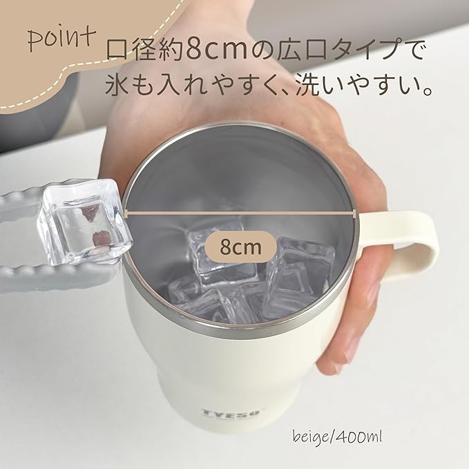 TYESO マグカップ タンブラー 蓋付き ステンレス鋼 真空断熱 大容量 保温保冷 コーヒー カップ 取っ手付き 持ち運び タンブラー プレゼント 500ml TS-8879 灰色