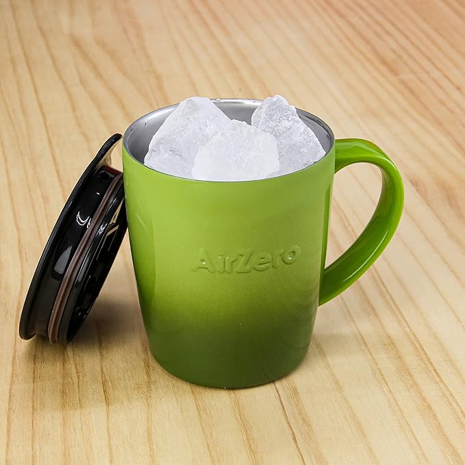 ●㋱3,630●色:グラデーショングリーン(オリーブグリーン、カーキグリーン、グリーン 系)● JANコード: 4549092003903 、●品番:AZ-MC300GRG 、●サイズ:約11.5 10 高10.2(蓋付10.5)cm 、●本体飲み口内径:約8.0cm、●重量:約200g 、●満水容量:約300ml(実容量はやや少なめになります)●保温効力:70度以上(1時間)、 ●保冷効力:5度以下(1時間) 、●材質:本体/ステンレス鋼、 ポリプロピレン、 ふた・せん/ポリプロピレン、 パッキン/シリコンゴム 、●原産国:中国、※「AirZero(エアゼロ)」は、株式会社グッドフェイスが企画・監修し、日本基準の厳重な品質管理の下、 中国工場で製造しています。