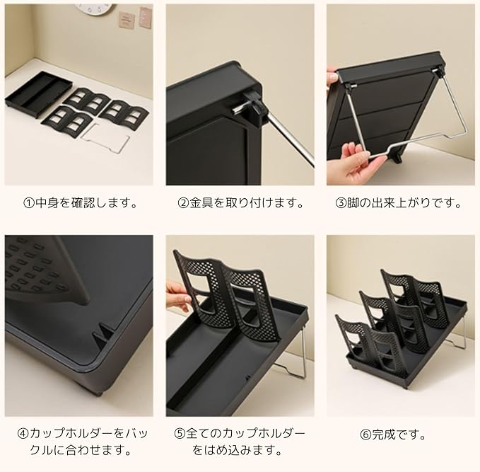 【コーヒー専門店おススメ】Modest Joy カップホルダー 紙コップホルダー カップディスペンサー カップスタンド グラスラックコーヒーカップ おしゃれ 大容量 平置き ナナメ置き インテリア バリエーションあり (黒, 大)