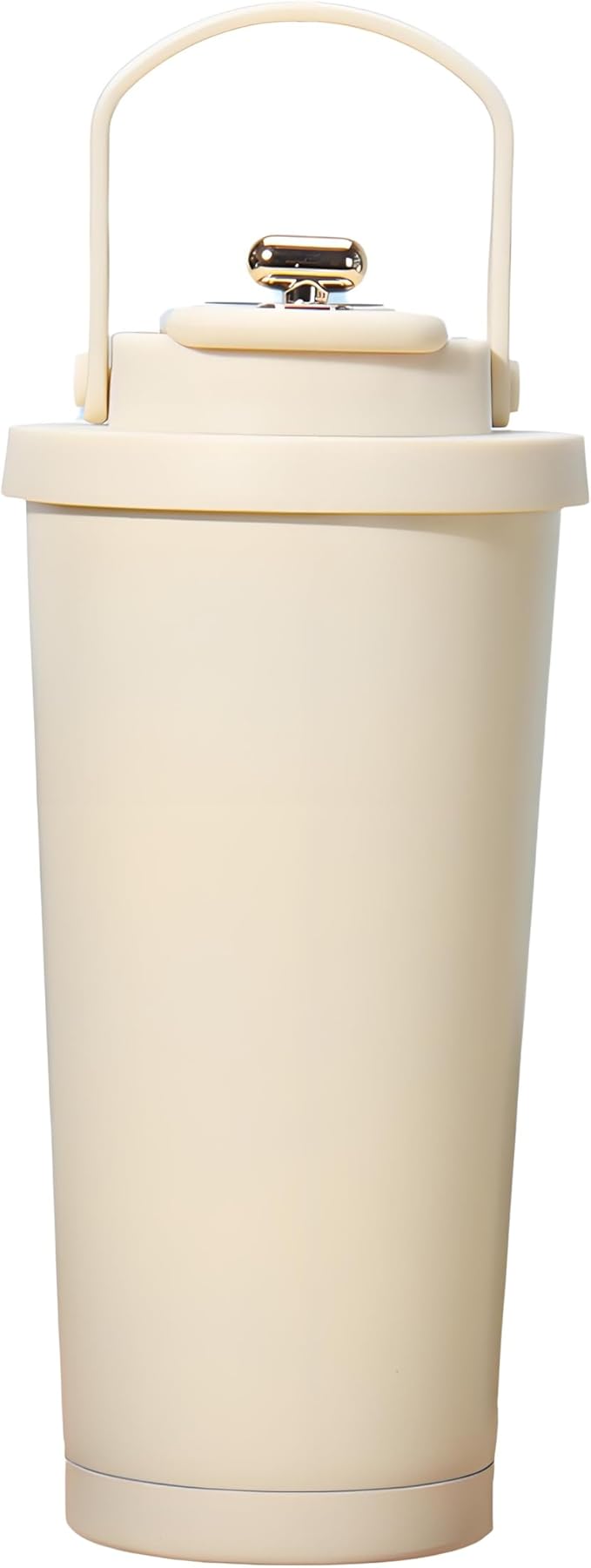 【医療用316ステンレス鋼】IOLOYU タンブラー 蓋付き こぼれない ステンレスタンブラー 520ml 大容量 洗いやすい 水筒 コーヒー 真空断熱タンブラー 持ち運び 持ち手付き 保温杯 手を入れて洗える水筒 密閉 漏れない 車 可愛い コンビニ coffee mug 大きい 保温 保冷 咖啡杯 (2way 飲口 白ベージュ)