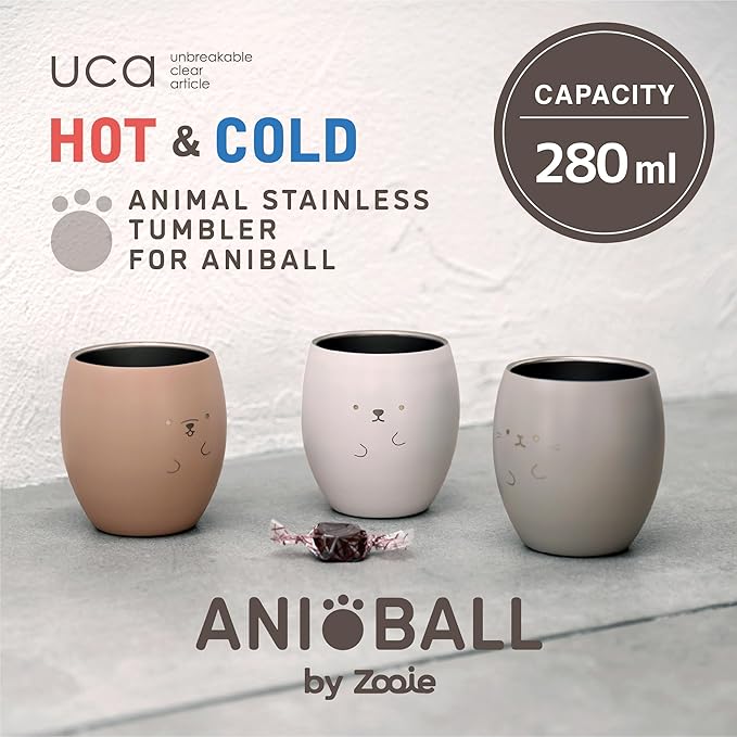 アニマルがボールになったアニボールの真空断熱ステンレスタンブラー。イヌ、シロクマ、ネコをモチーフにした「uca アニマルステンレスタンブラー」