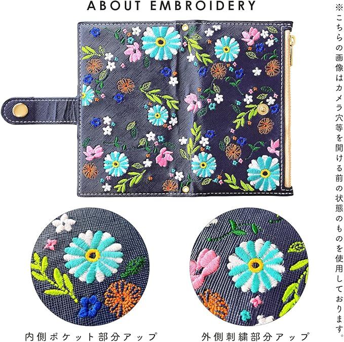 Google Pixel 9a 対応 ケース 手帳型 カバー スマホケース スマホカバー おしゃれ花刺繍 ネイビー