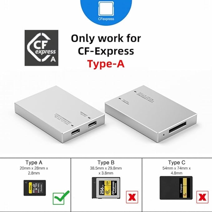製品用途: CFexpress A カードを USB3.0 または USB3.1 スロットに拡張するのに適しています。(XQD/CFB カードには対応していません)