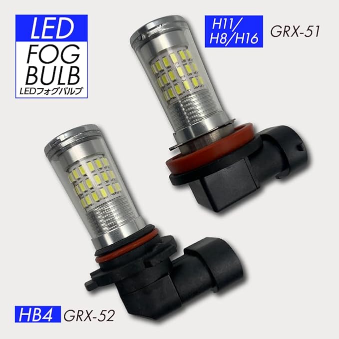 ● 幅広い適合性:H8、H11、H16の共通タイプ(GRX-51)と、HB4専用タイプ(GRX-52)の2タイプをラインナップ。