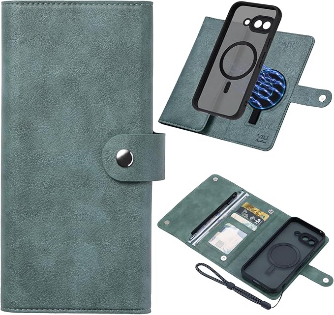 [Torske] グーグルピクセル9aケース 手帳型 Pixel9a ケース 収納ポケット付き 大容量 財布一体型 Google Pixel 9a ケース 手帳型 ハンドストラップ付き TPU取り外し可能 ピクセル9aケース Googleピクセル9aケース ワイヤレス充電 Google Pixel 9a カバー 小銭入れ 鍵入れ 三つ折り スマホケース 汗、指紋や擦り傷防止 (グリーン)