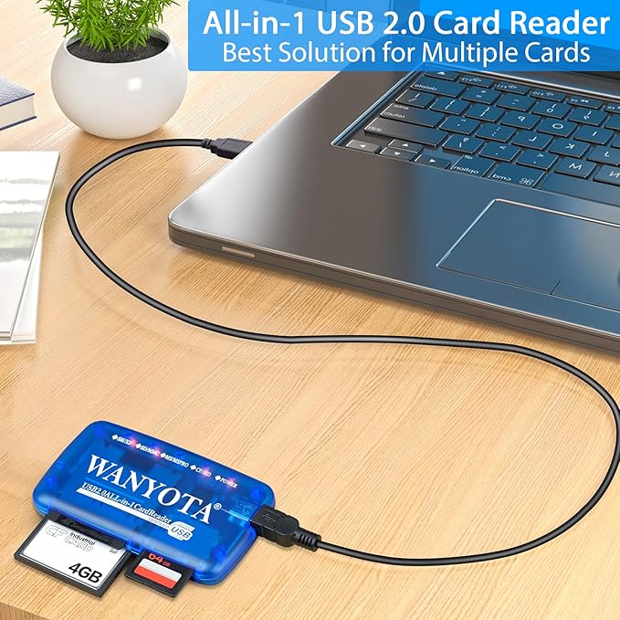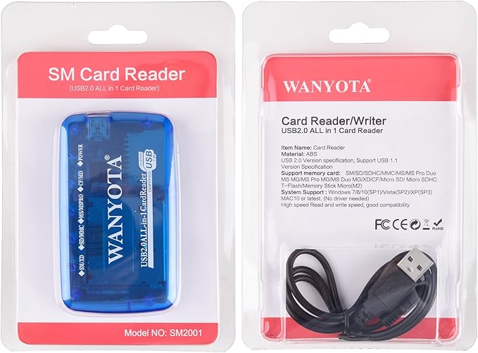 スリムマルチカードリーダー:SM(スマートメディアカード)/xDピクチャーカード/SD / SDHC / SDXC / miniSD / miniSDHC / MS / M2 / MS Duo / MS PRO / MS PRO Duo / MagicGate MS / MS Micro / MS PRO -HG / MS PRO-HG Duo / CF /MMCおよびRS-MMCメモリーカードなど...最も一般的なメディアカードにすばやくアクセスするための青いオールインワン外部マルチカードリーダー/ライター。