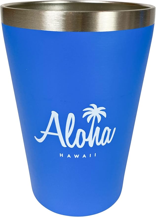 シンプルなALOHAロゴ ステンレス タンブラー 450ml 高さ13cm ブルー 保冷 保温 ヤシの木ロゴ 結露しにくい 熱くない カップホルダー マグカップ マイカップ エンヴェールヘルック