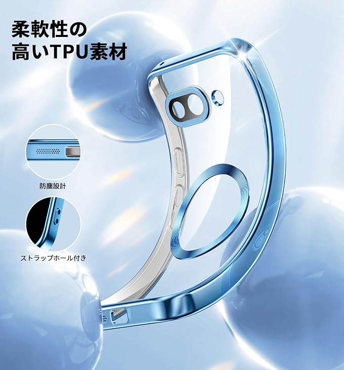 【金属光沢・CDリング・Magsafe対応】NIANGUO Google Pixel 9a 用 ケース クリア ストラップホール付き フィット感 黄ばみなし カメラ保護 ソフト ワイヤレス充電対応 マグネット内蔵 耐衝撃 耐久性 メッキ加工 軽量 マグセーフ対応 スマホケース グーグル ピクセル 9a カバー 6.3インチ(ブルー)