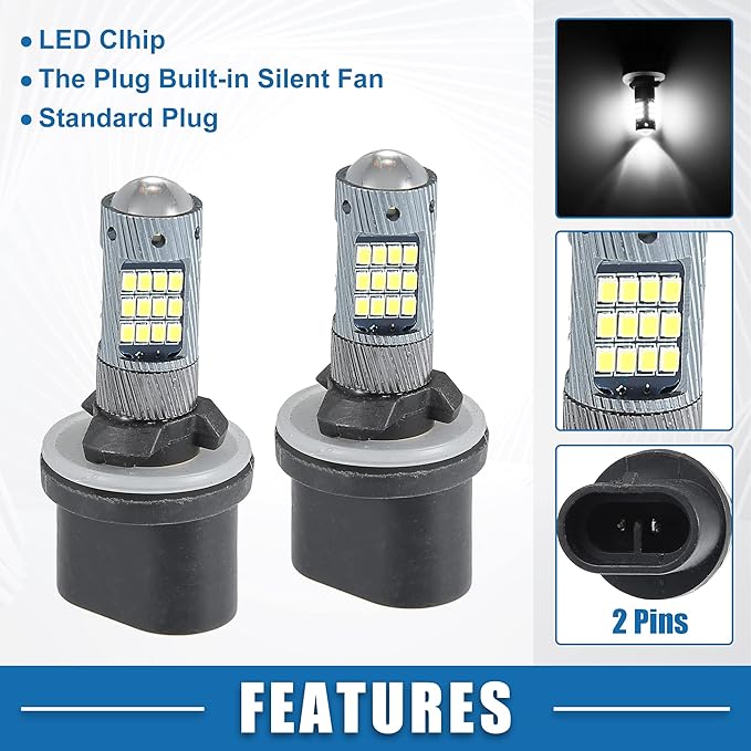 適用 - 880 LEDフォグライト、62個 2016チップが搭載され、プラスチックとメタル製で、小型です。
